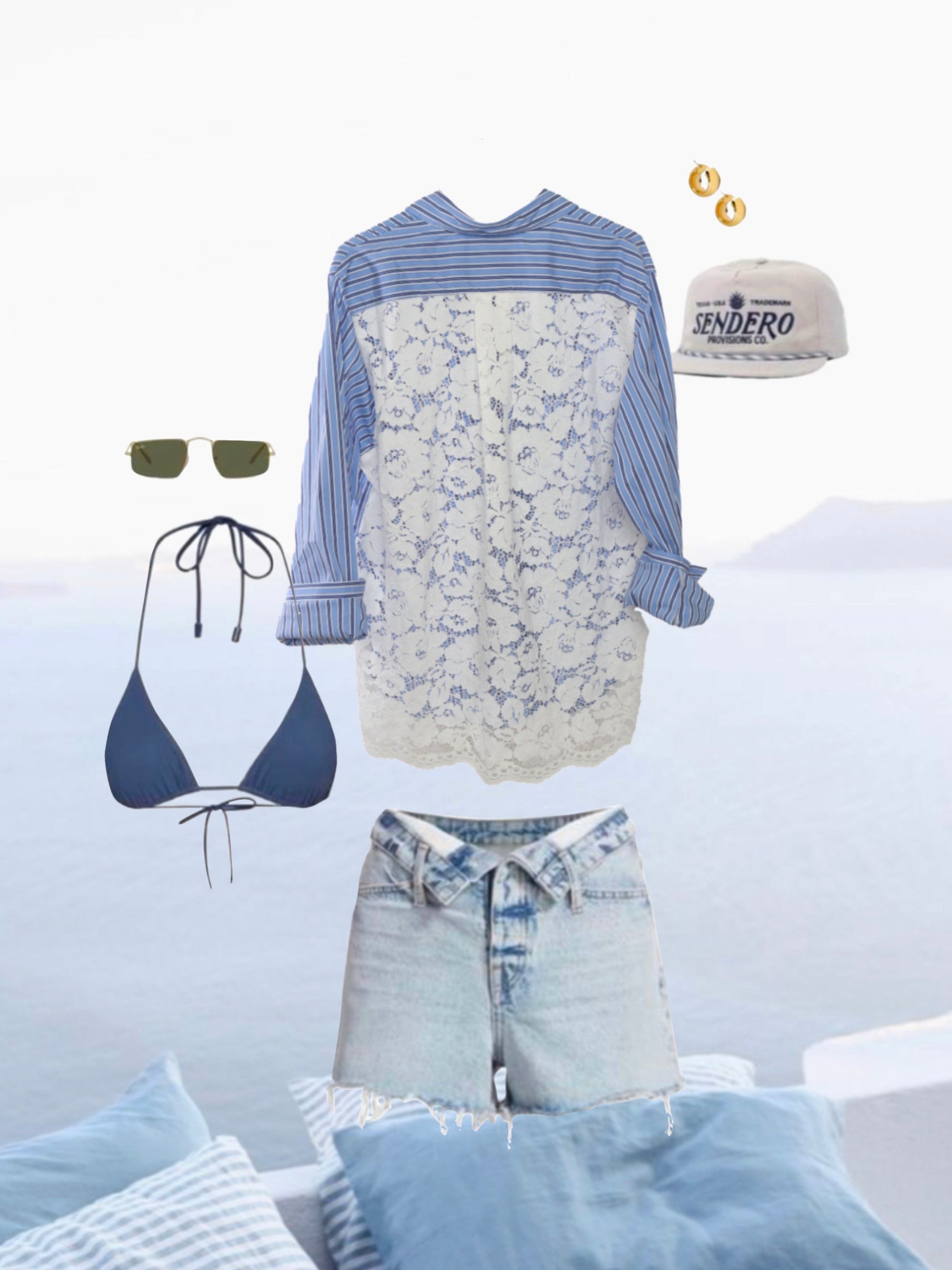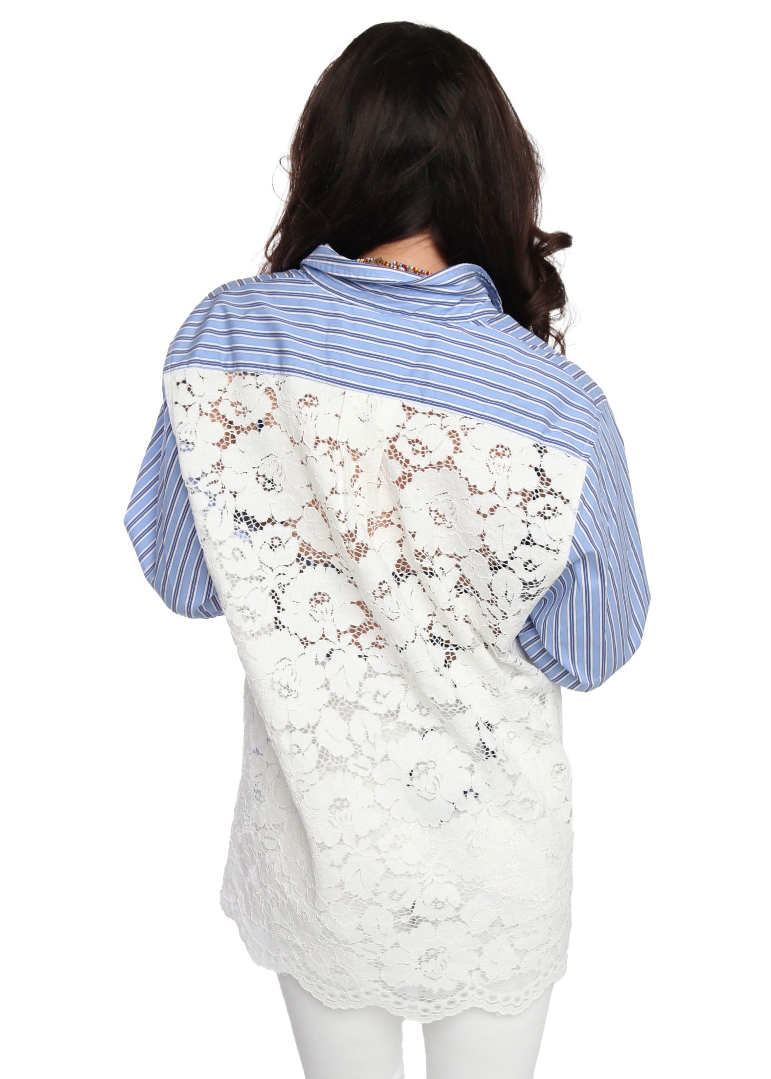 Oversized Lightweight cotton-blend button-down shirt with back lace panel and grosgrain button detail.