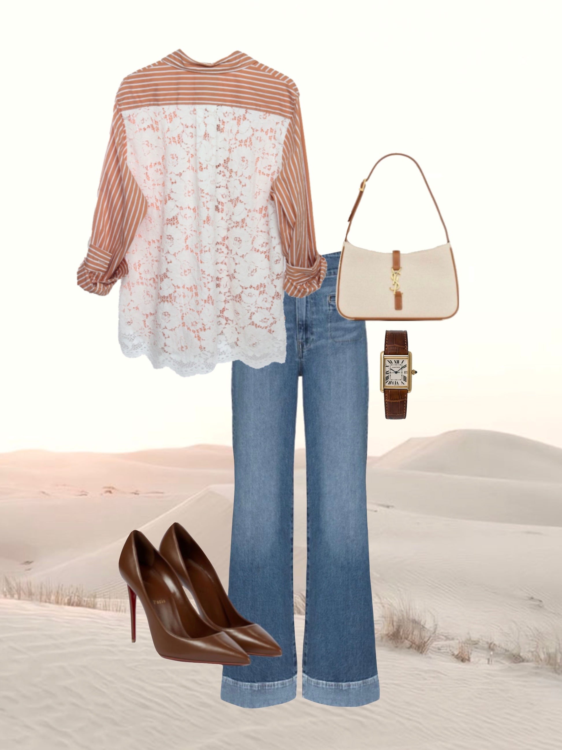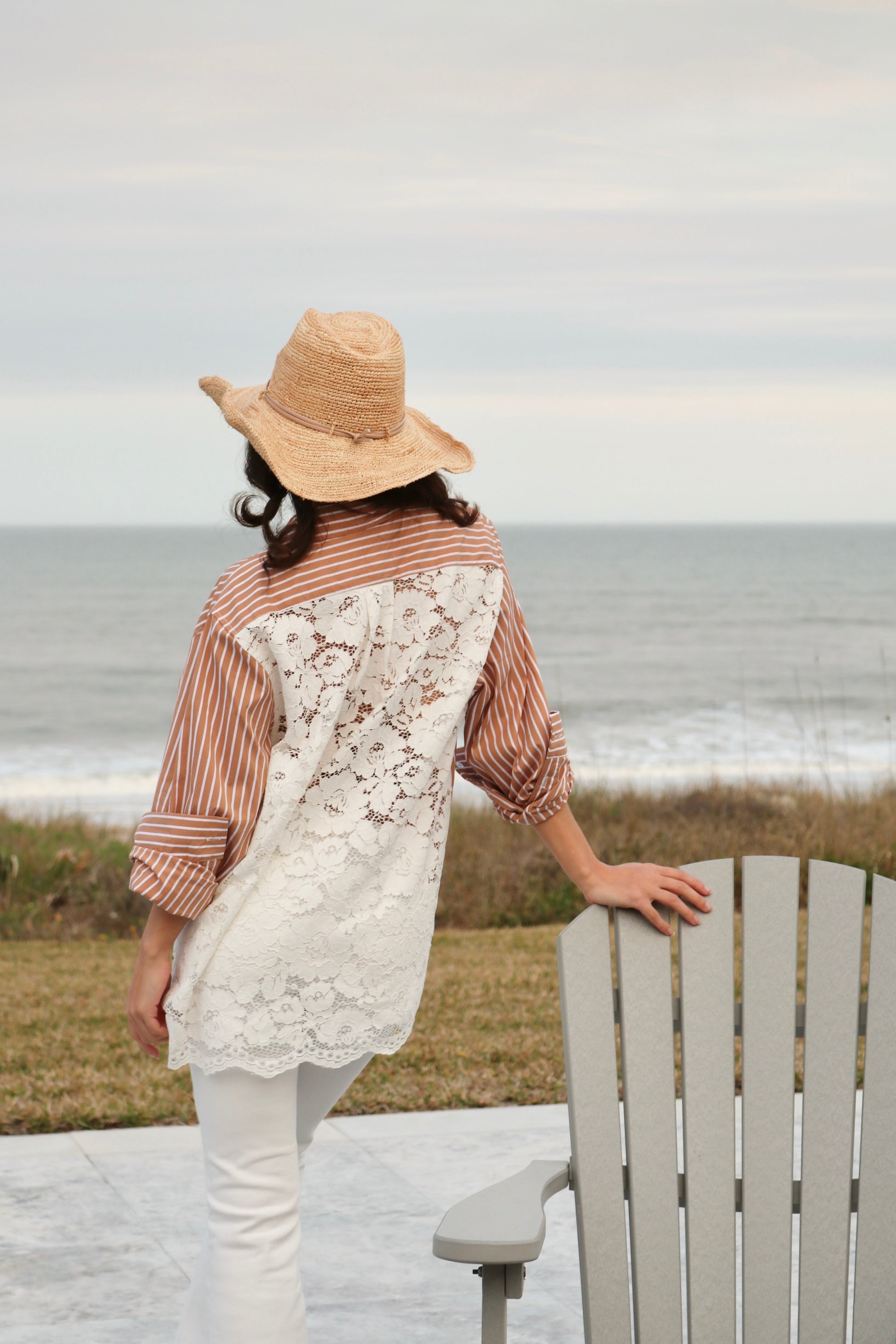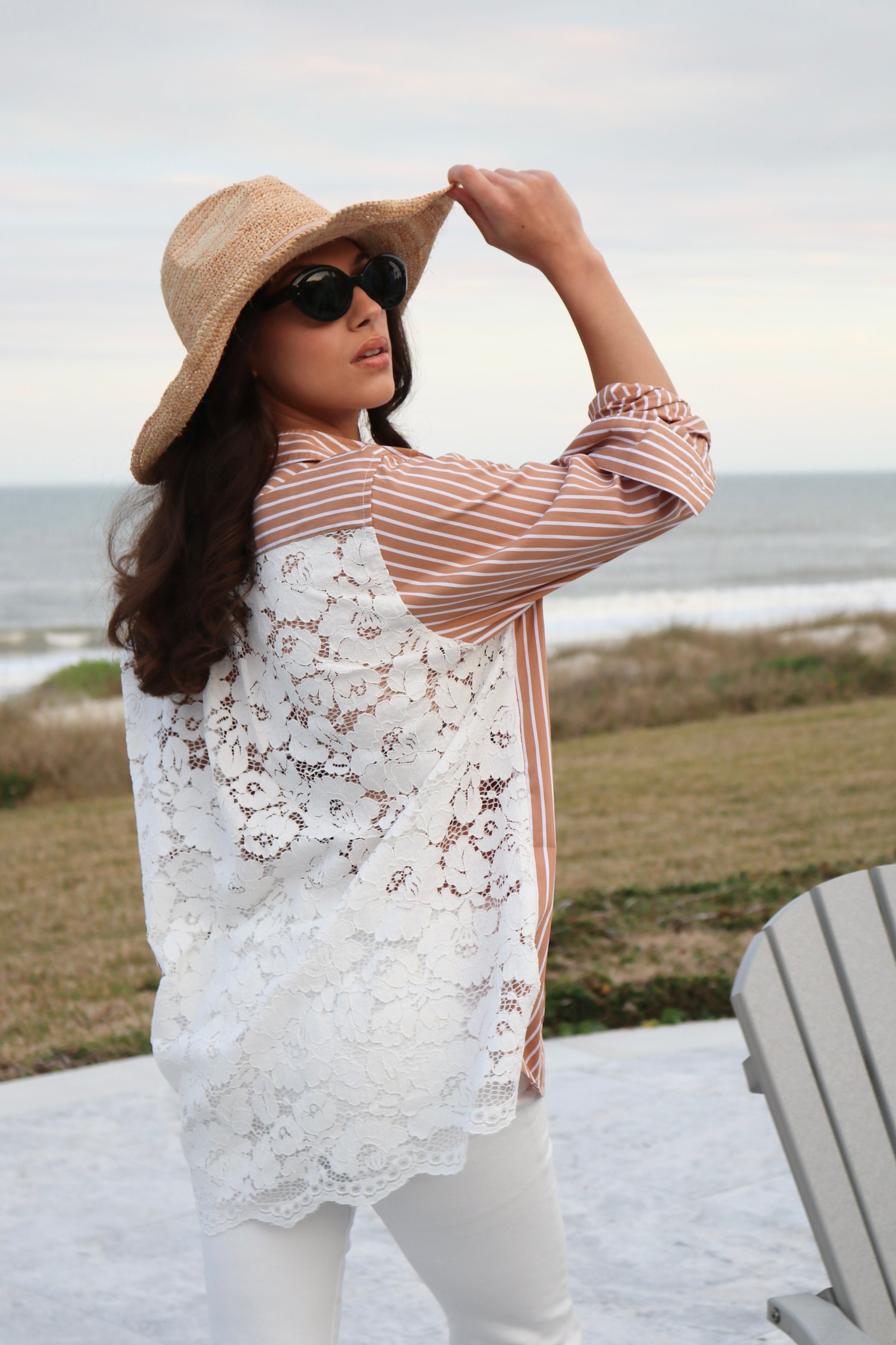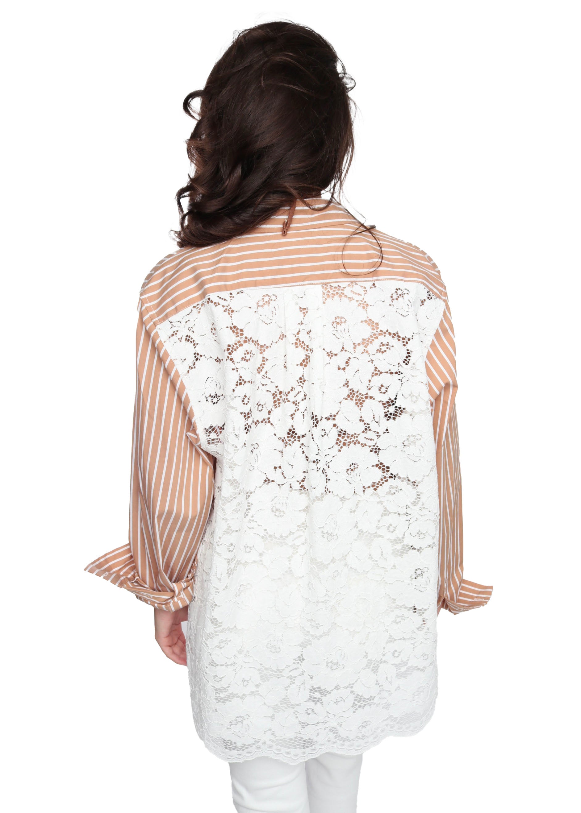 Oversized Lightweight cotton-blend button-down shirt with back lace panel and grosgrain button detail.